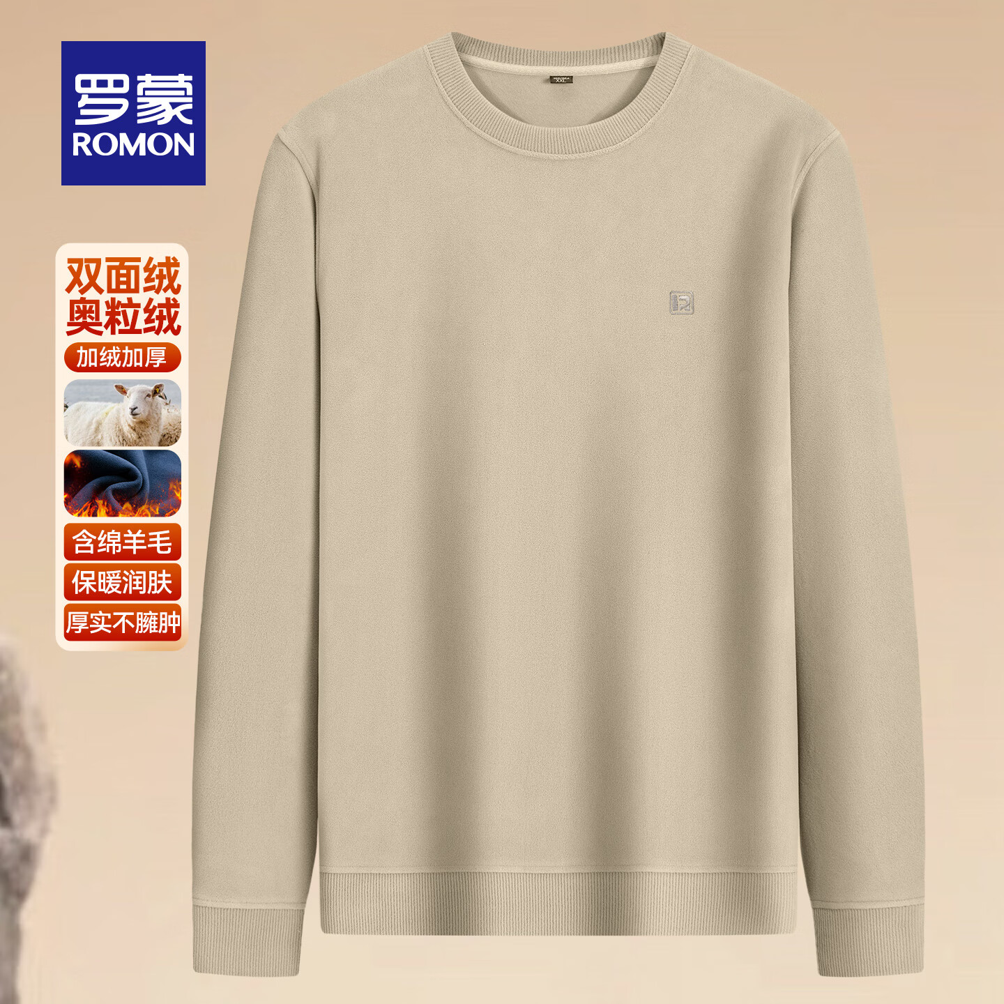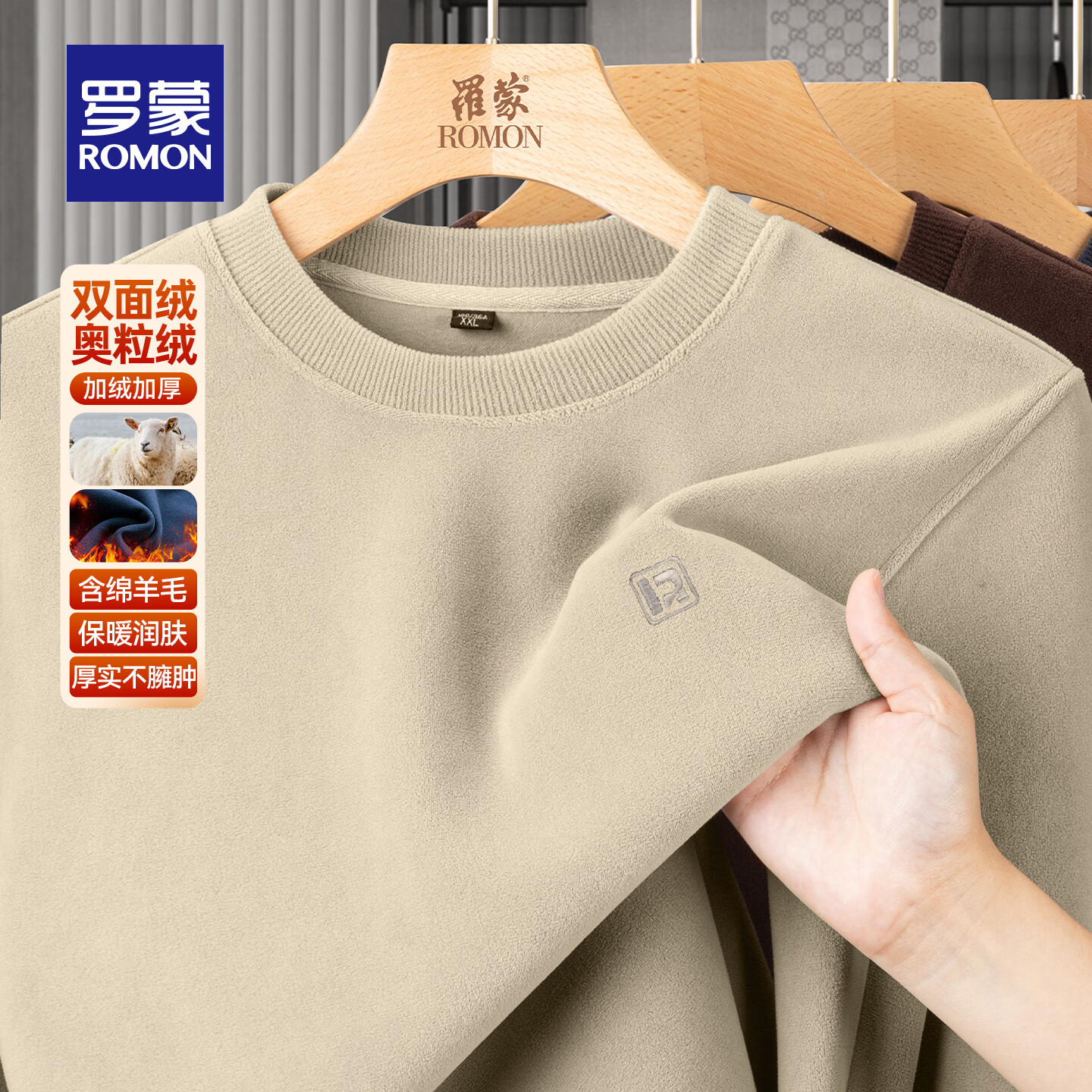 罗蒙含羊毛刺绣圆领加绒加厚长袖T恤卫衣,多色可选---------------------