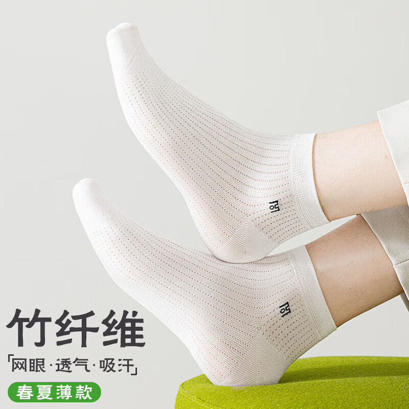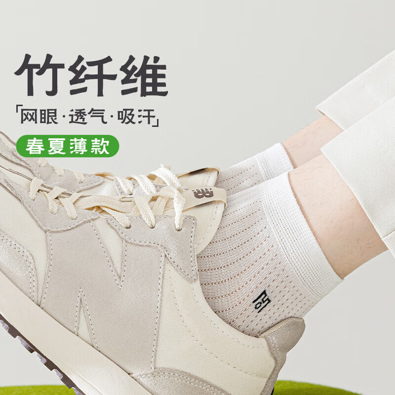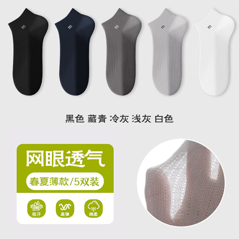 宜而爽春夏季网眼薄款袜子男舒适透气吸湿导汗耐磨防臭短袜时尚简约百搭 黑色 藏青 冷灰 浅灰 白色 5双装 均码
