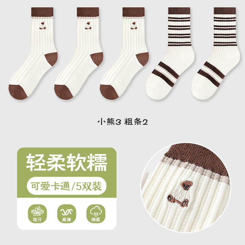 宜而爽秋冬季女中筒堆堆袜5双---------------------