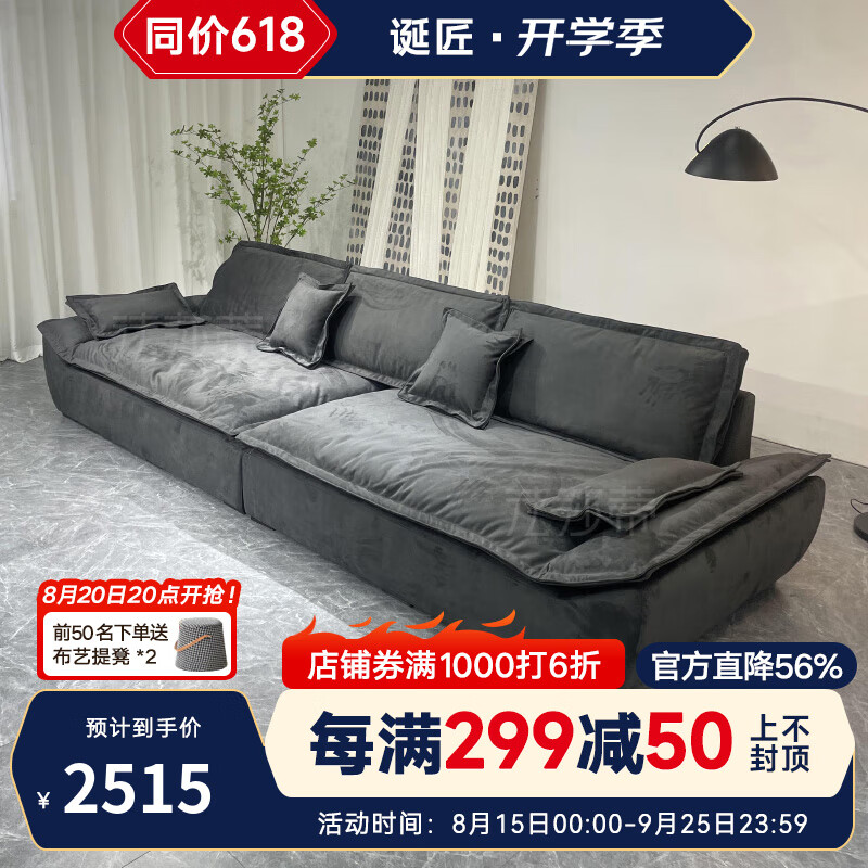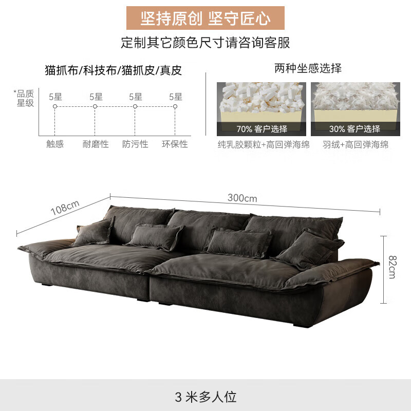 商品: 诞匠奥克兰帆船沙发客厅懒人沙发科技绒布深坐宽羽绒猫抓布沙发 3米多人位 猫抓布+羽绒坐垫