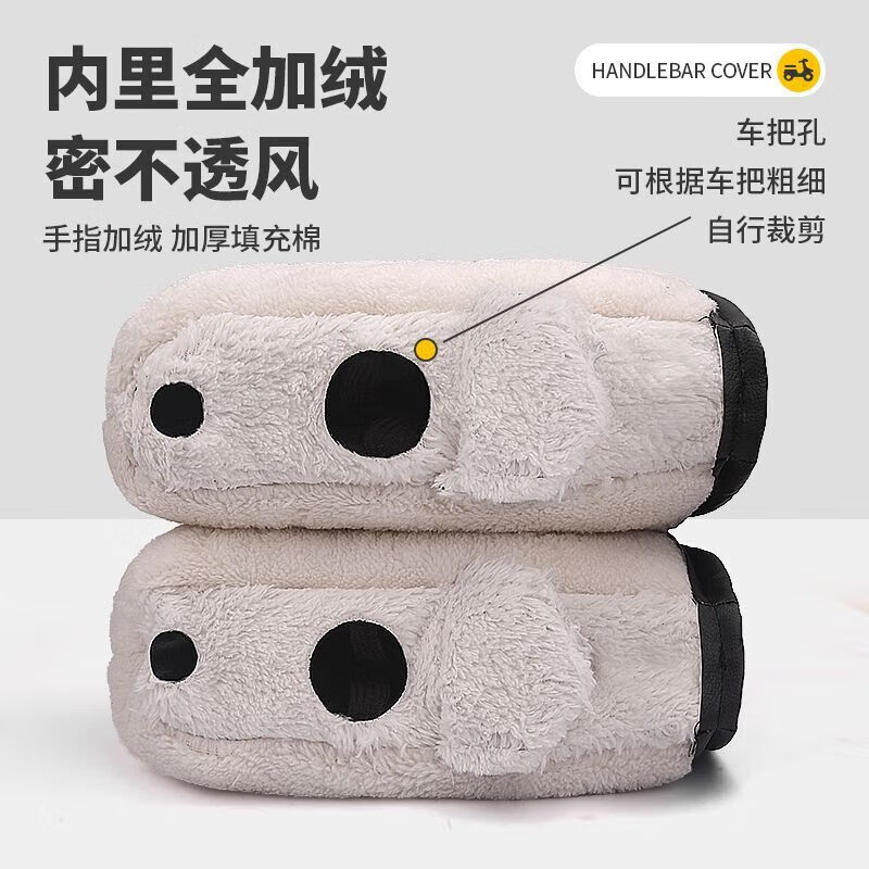 冬季电动车手套保暖加厚把手套自行车防雨防风PU皮革摩托车棉把套 中厚加绒加厚布款