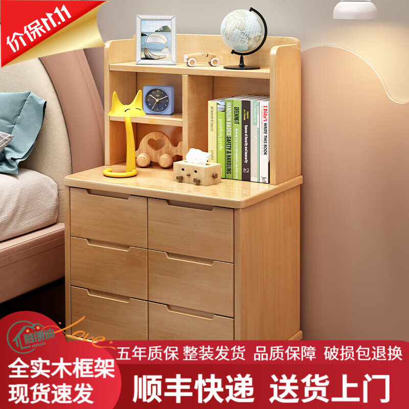 商品: 慕朗迪全实木床头柜卧室简易小型极窄床前柜床边柜 【实木橡胶木】原木色 正面40cm 侧宽40cm 高99cm