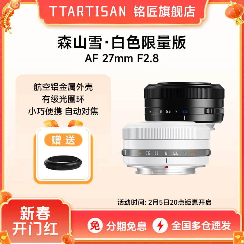 商品: TTArtisan 铭匠光学27mm F2.8自动对焦镜头适用E/Z/X卡口XM5 银色 富士x口