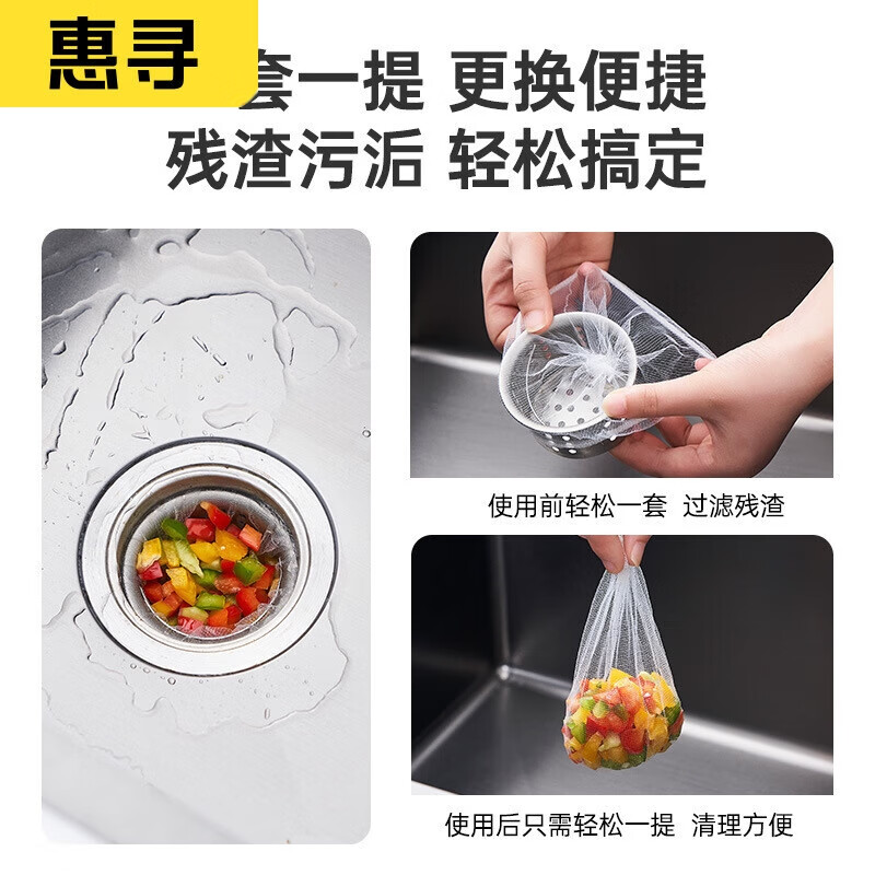 惠寻水槽过滤网洗碗池排水口一次性过漏网袋 30只装【细网带束口】