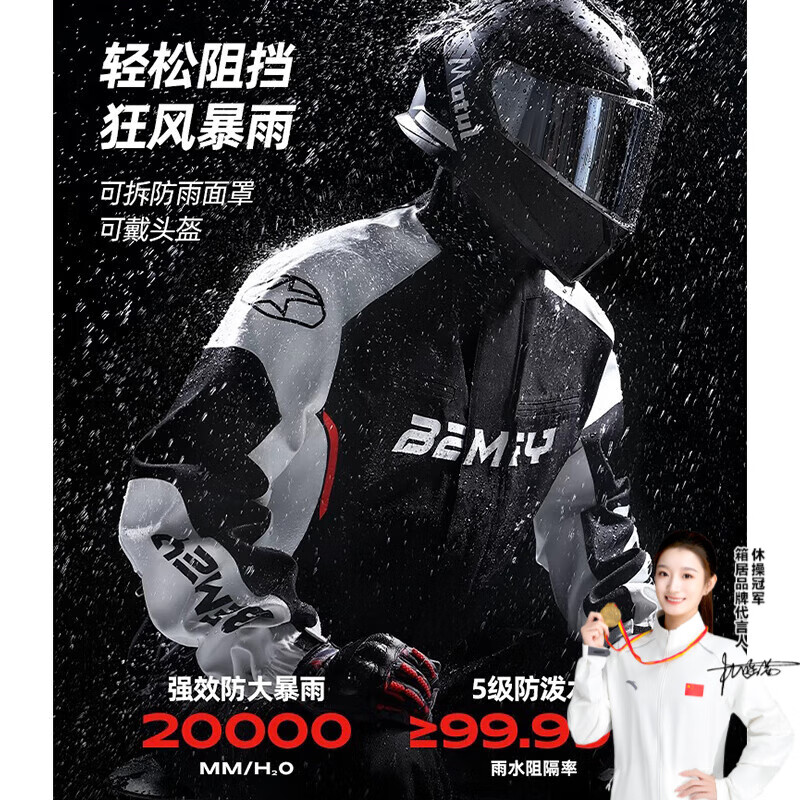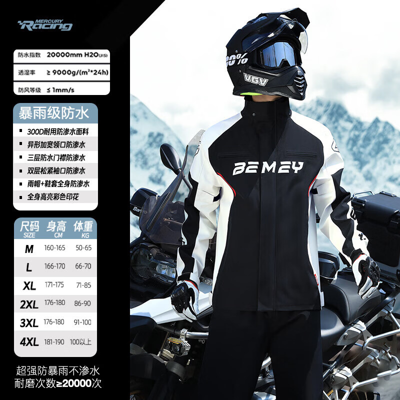 箱居骑行雨衣专用全身防暴雨套装电动车外卖骑手摩托骑行分体加厚雨服 黑白色款雨衣套装 XXL 1件