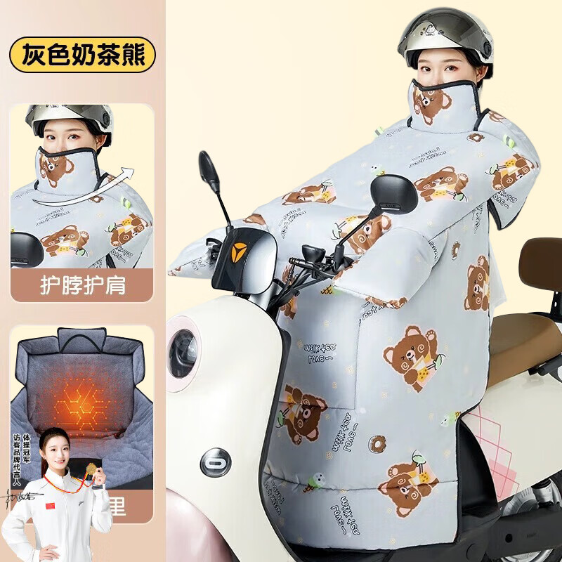 访客电动车挡风被冬季加厚四季通用电瓶车摩托车挡风加绒保暖2025新款 【灰色奶茶熊】冬季加厚加宽款