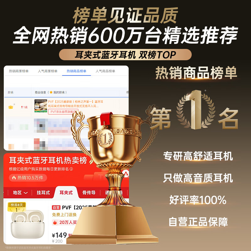 PVF【2025最新款丨柏林之声第一】蓝牙耳机耳夹式骨传导概念开放式无线不入耳运动跑步游戏AI降噪男女