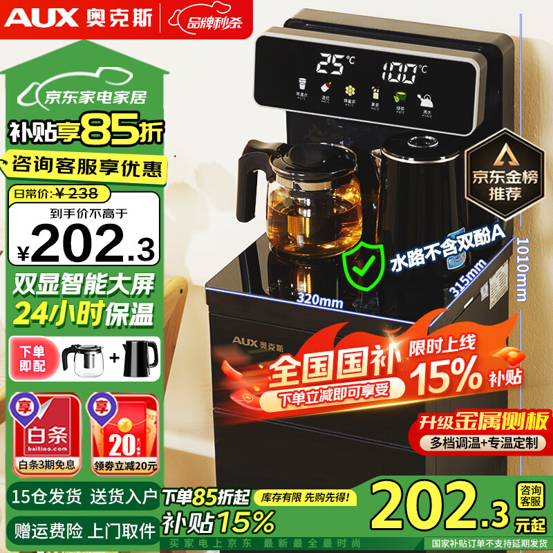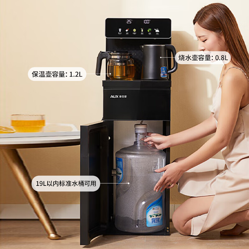 商品: 奥克斯(AUX)茶吧机家用多功能智能遥控大屏双显立式下置式饮水机 加厚金属侧板 旗舰爆款【玻璃大屏双温双显】 温热型