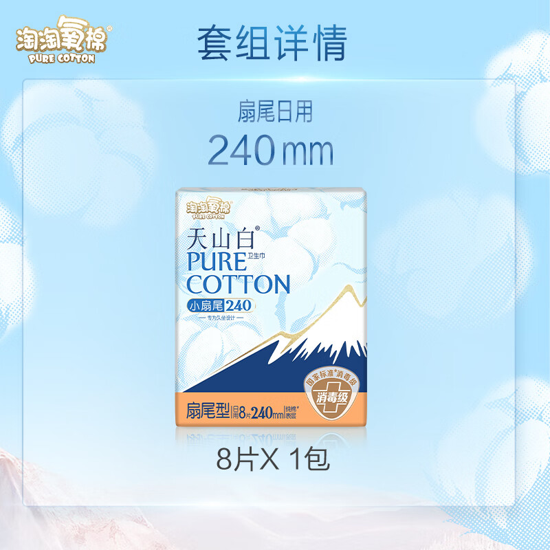 淘淘氧棉天山白消毒级卫生巾组合纯棉日夜用小蛮腰安睡裤多系列任选6件 扇尾240mm日用8片*1包