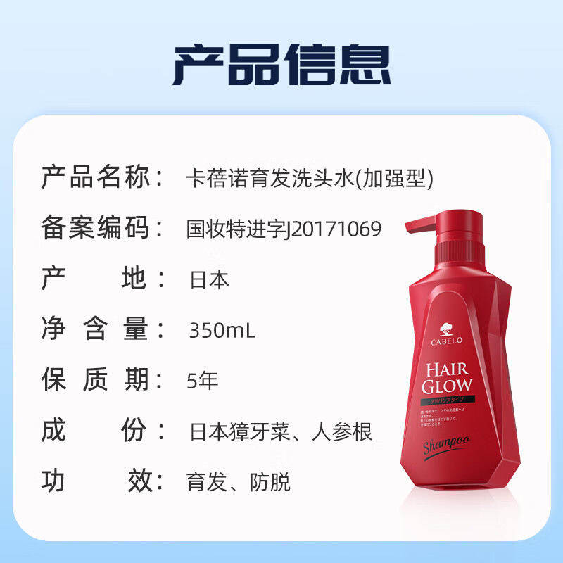 卡蓓诺(CABELO)防脱洗发水加强型深层焕活头皮掉发发量稀少适用【日本原装进口】 【育发加强型】无硅油配方 强健发根 洗发水 350ml*1瓶