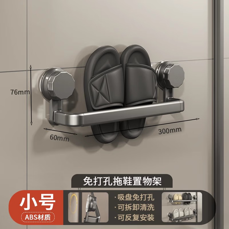 商品: 映调吸盘拖鞋架免打孔浴室卫生间厕所门后置物架收纳架沥水架毛巾架 【吸盘单人款】枪灰色 35cm