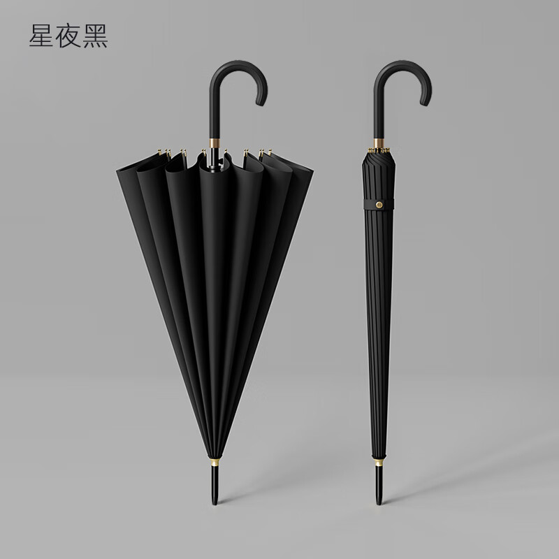 简先生24骨长柄雨伞男士自动加大双人加厚加固结实抗风暴雨专用女伞定制 【抗风钢骨】配色弯柄星夜黑 16