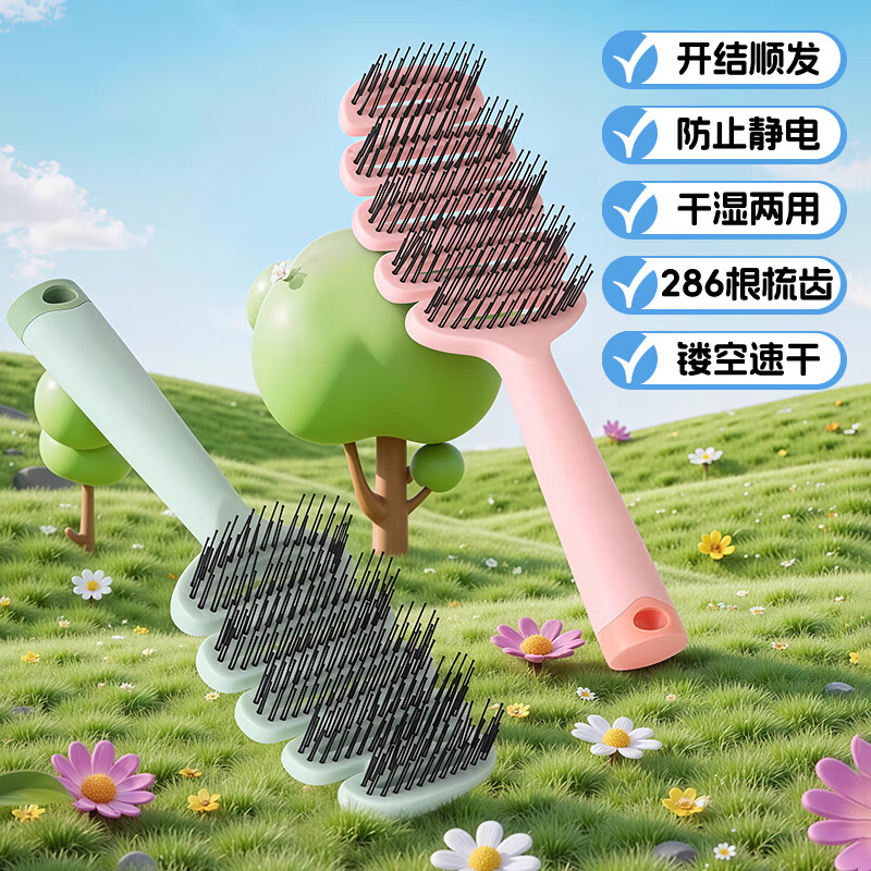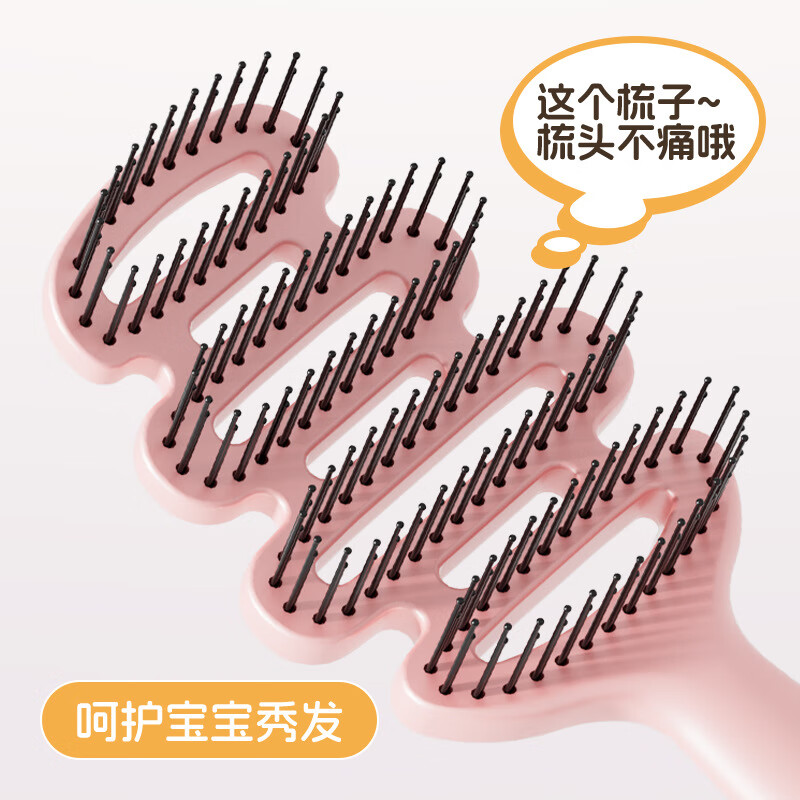 昀翕儿童镂空梳顺发不打结松针齿按摩梳子高颅顶定型专用松塔梳高低针 牛油果绿 儿童按摩高低针不伤头皮梳
