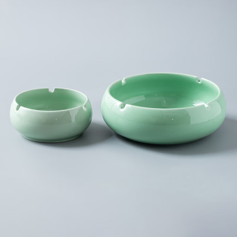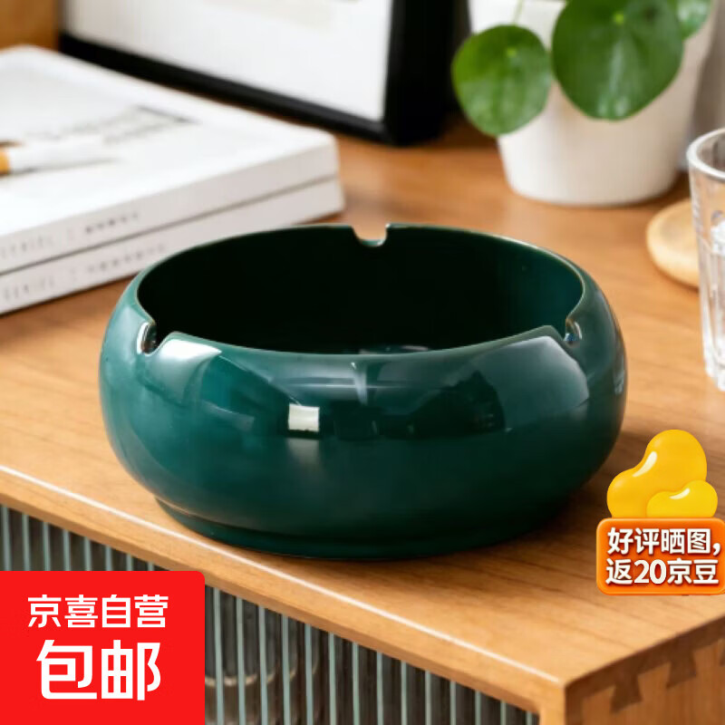 烟灰缸家用创意潮流个性陶瓷办公室烟缸大气中式创意客厅大号轻奢 小号纯色烟灰缸-墨绿