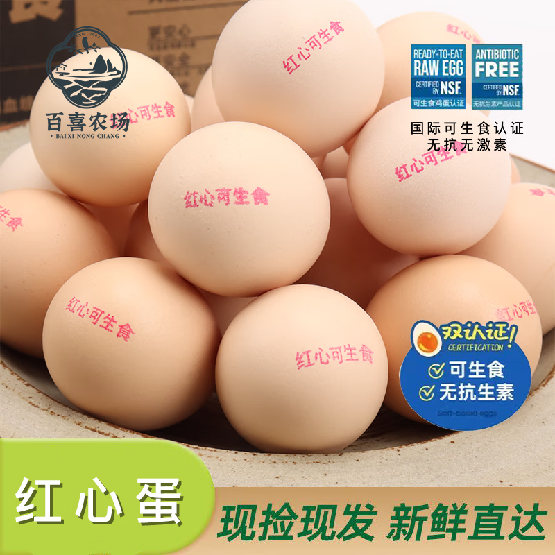 贵州正宗野外新鲜散养五谷红心无菌土鸡蛋 生鲜超市可生食溏心蛋 贵州/无菌【可生食红心蛋】 【10颗5层纸箱】/破蛋包赔50-55g