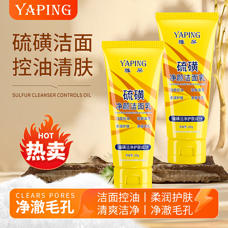 硫磺洗面奶除螨女深层清洁收缩毛孔洁面乳脸控油男女净颜清爽 硫磺洗面奶 2支 100g/1支