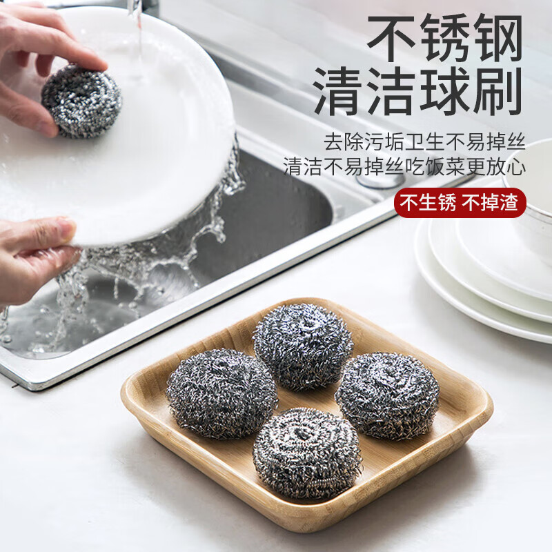 天平朝晖钢丝球家用清洁球不掉丝厨房洗碗洗锅不锈钢去污铁丝球 【袋装】6只