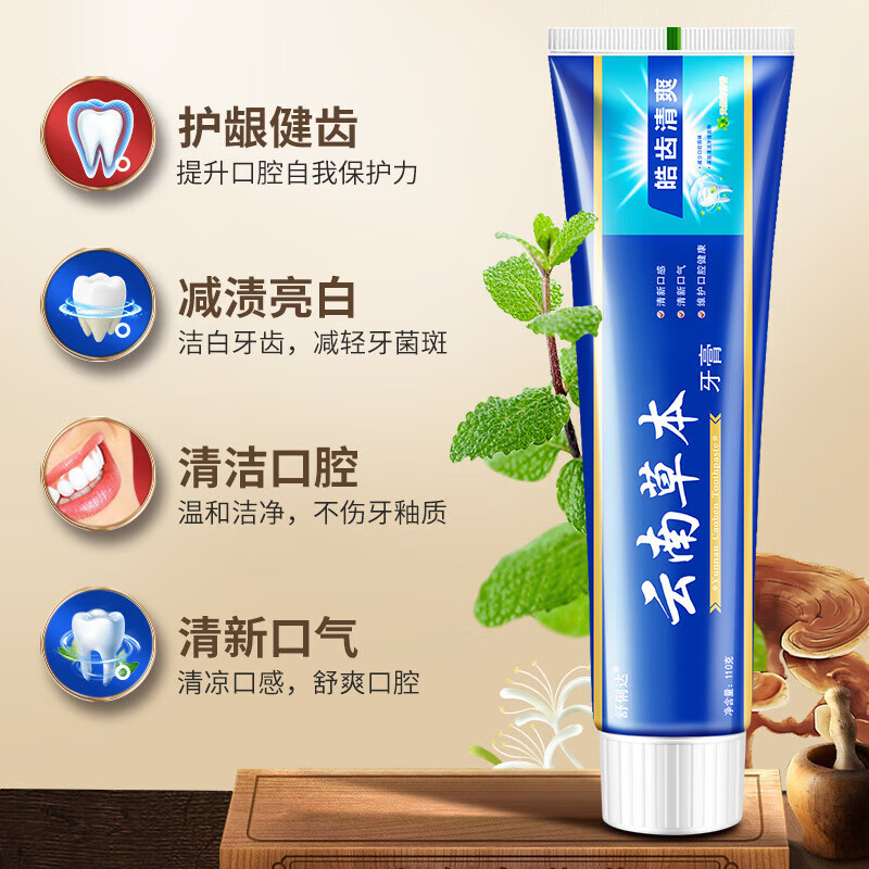 云南中草药草本三七双效护齿牙膏亮白去黄去牙渍口臭口气清新 云南本草牙膏1支装