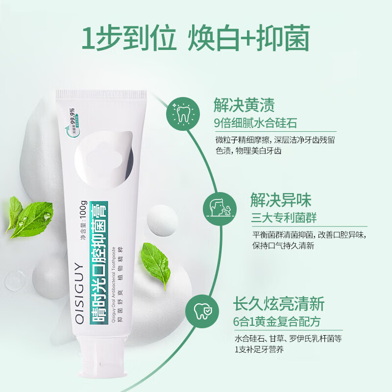 晴时光口腔抑菌膏去渍去黄清新口气去口臭亮白牙齿敏感牙可用 甘草薄荷三盒装100g*3
