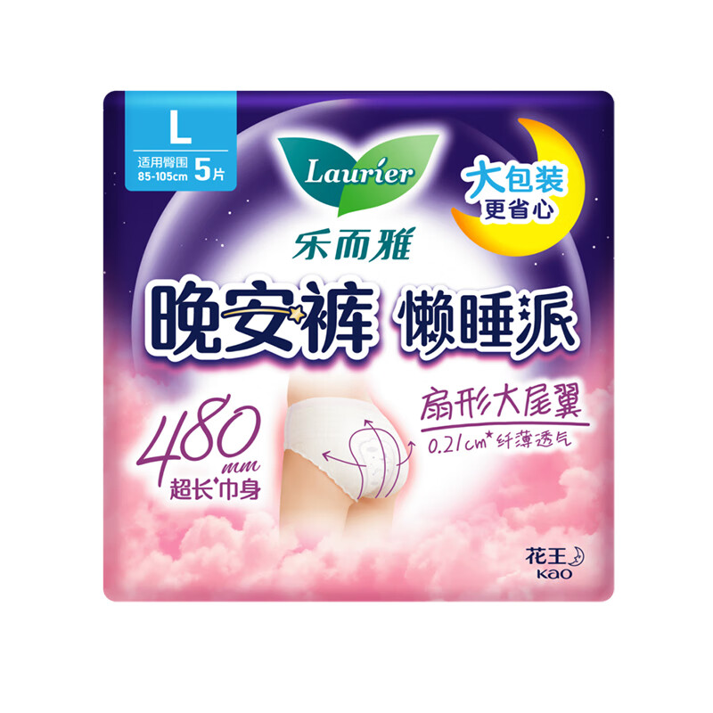乐而雅花王安睡安心裤姨妈女经期用防漏学生批发 L 5条 75-140斤 懒睡派