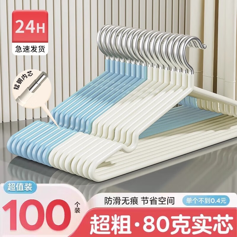宅晓只衣架家用挂衣无痕防滑晾衣架宿舍用学生防肩角晒衣服收纳挂晒撑子 40g防滑无痕【奶油白】加粗 10支