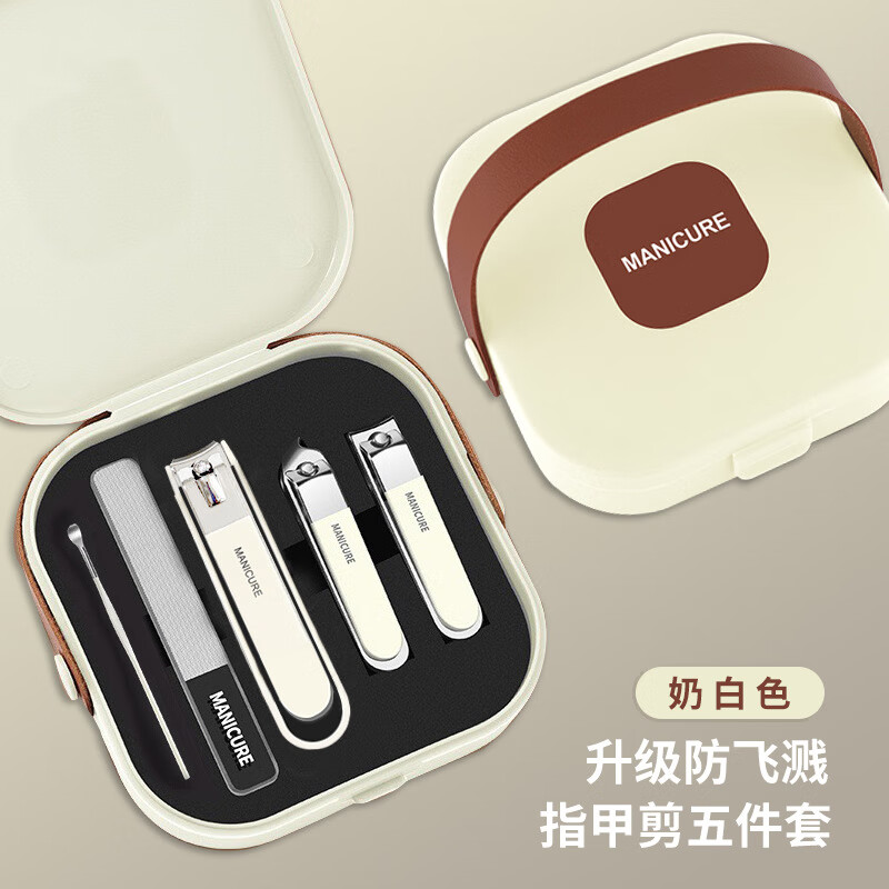 小米有品便携防飞溅指甲刀套装修指甲工具8件套专修指甲钳收纳折叠包 便携《手提盒-5件套》奶白色