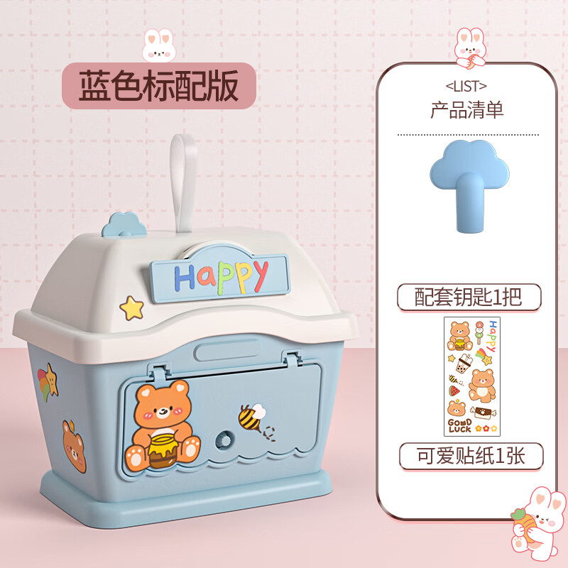 商品: 俏羽存钱罐女孩便宜新款只进不出男孩女孩储蓄箱网红生日礼物小房子 【蓝色标配版】小屋存钱罐+钥匙1