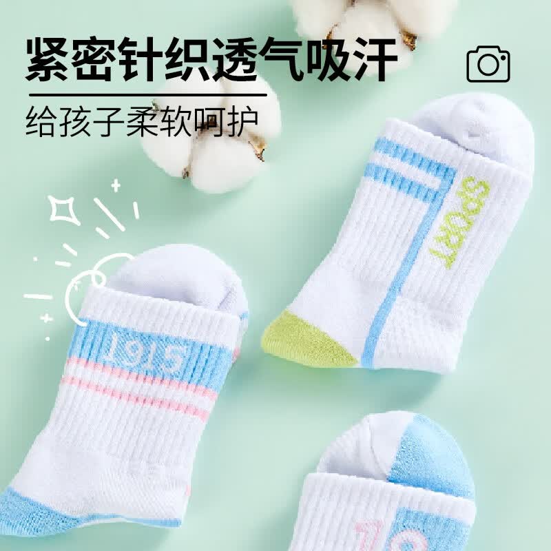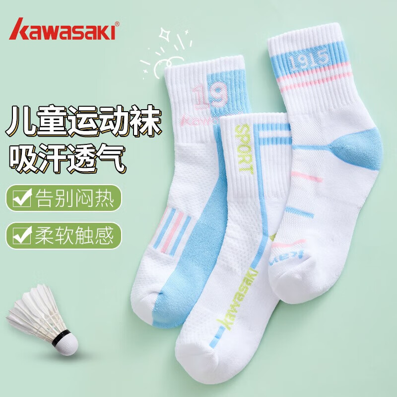 商品: kawasaki川崎羽毛球袜运动童袜天空蓝B6603(三双装)