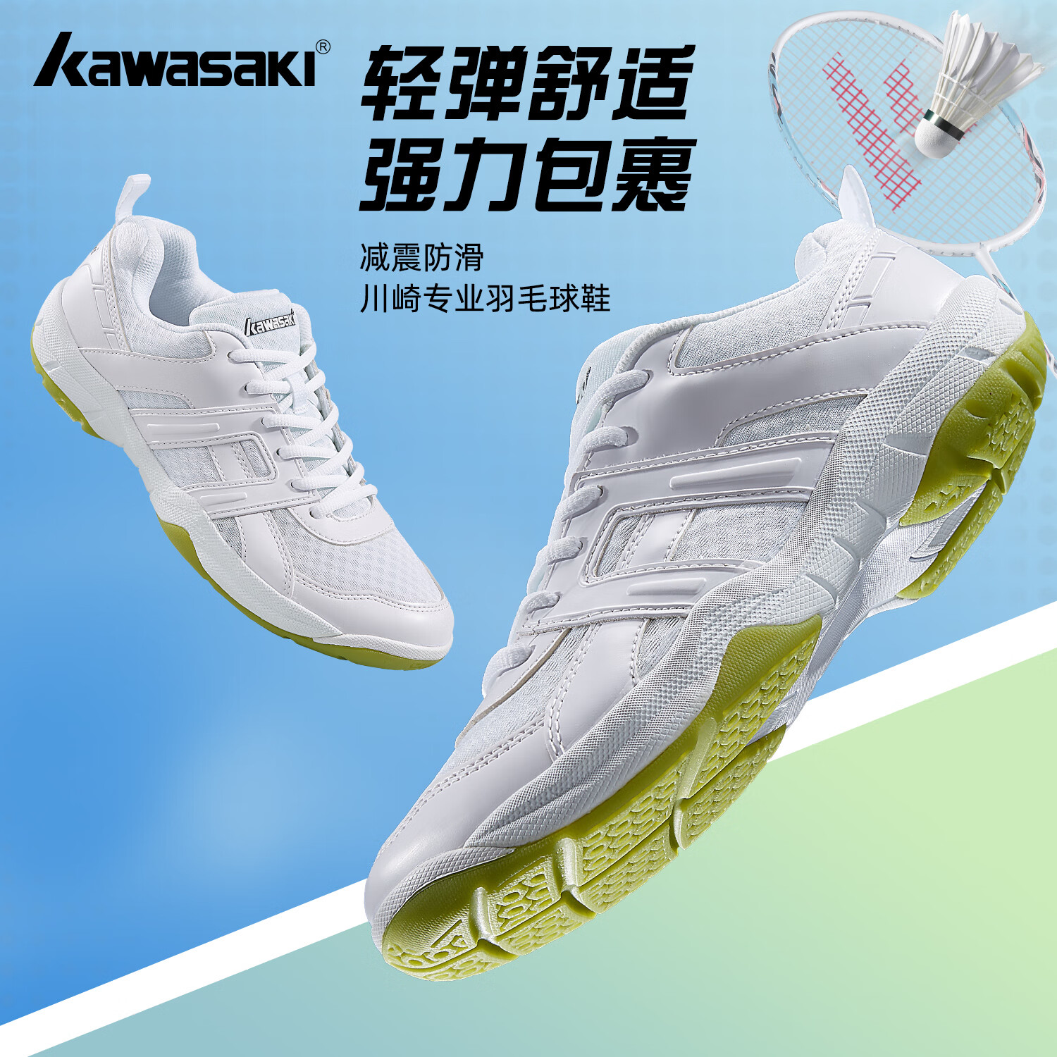 商品: kawasaki川崎羽毛球鞋耐磨减震透气男女运动跑步鞋k-073 专业款白色 38