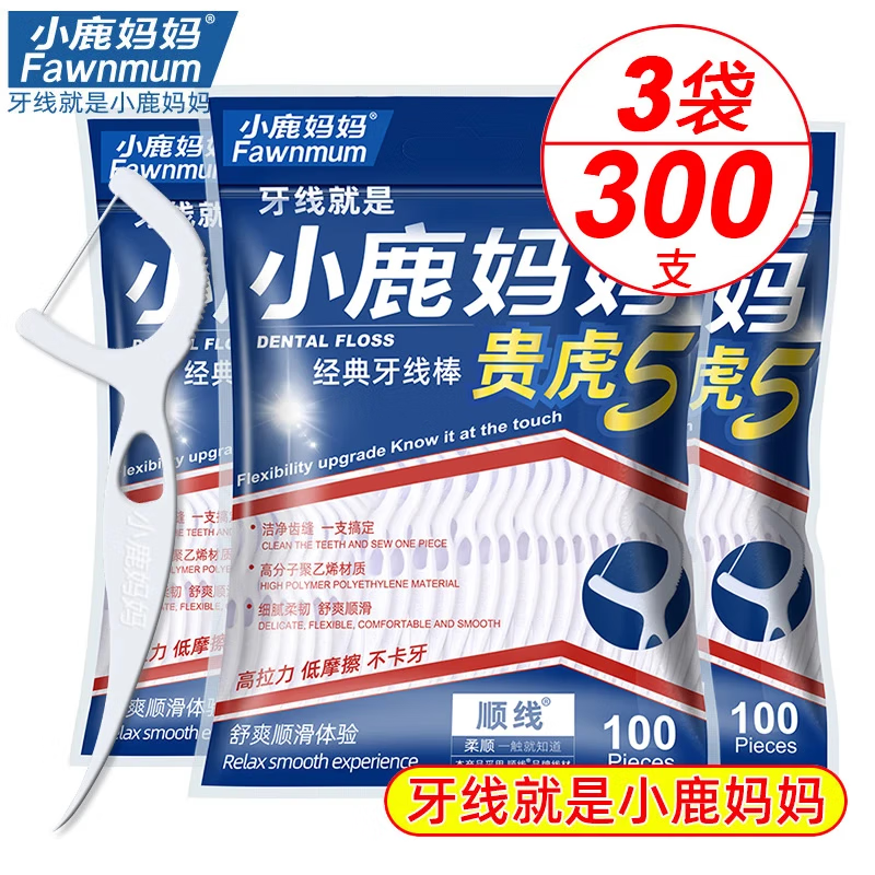 小鹿妈妈经典牙线棒超细清洁牙缝舒适深洁家庭装大包装牙线盒剔牙线家用 家庭袋装 100支 3袋