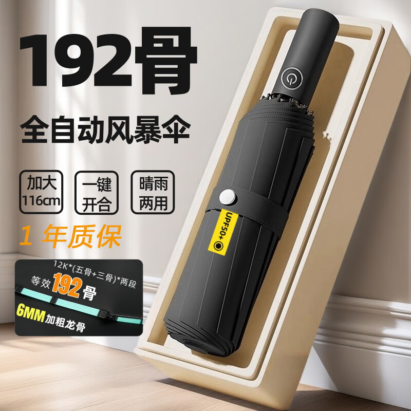 云开日出192骨全自动雨伞加固加厚结实抗风大号遮阳伞便携折叠伞男学生 192骨升级抗风暴伞-时尚黑