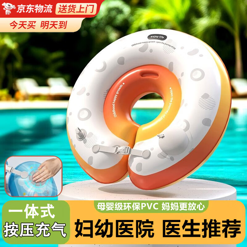 贝初众婴儿游泳圈0-3-6个月宝宝脖圈新生儿童腋下游泳圈小月龄洗澡颈圈 可可橙【0-12个月10-22斤宝宝】按压充气款 游泳圈0-1-3岁防侧翻防呛水玩具