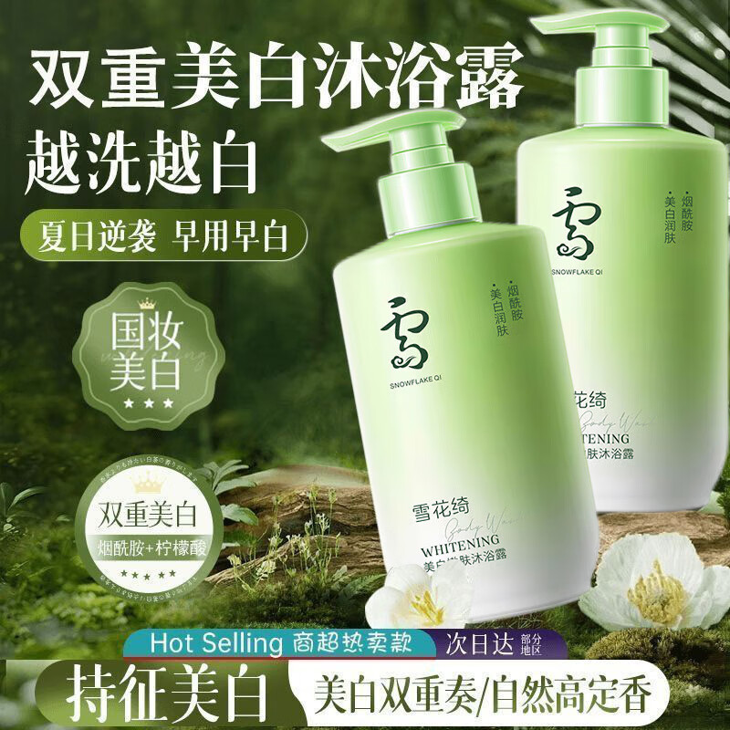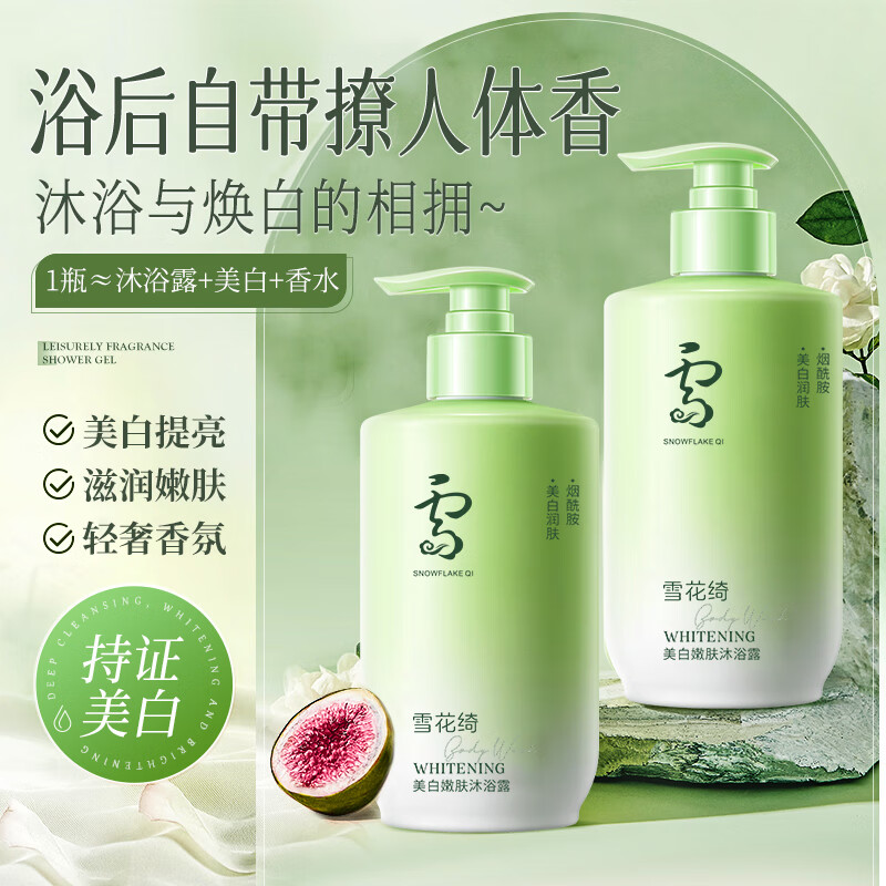 雪花绮美白嫩肤沐浴露全身烟酰胺沐浴露液持久留香72小时滋润保湿男女用 美白嫩肤-沐浴露380ml1瓶装