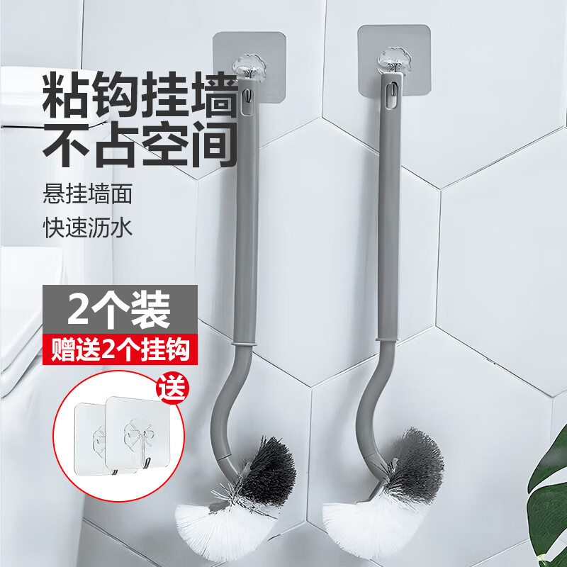 Jepoo新款日式创意马桶刷洁厕刷无死角软毛刷卫生间坐便器刷子 2个装S型刷毛款