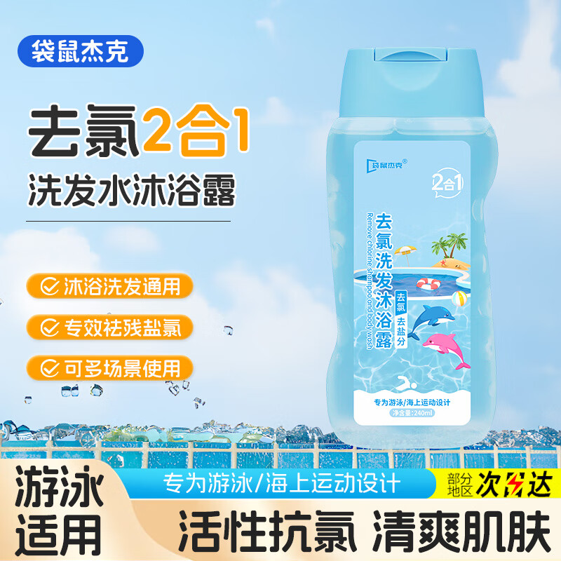 袋鼠杰克游泳专用去氯沐浴露洗发水二合一儿童男女成人温和去氯套装240ml 【去氯洗沐2合1】儿童专用*1 去氯洗沐二合一【热销榜Top1】