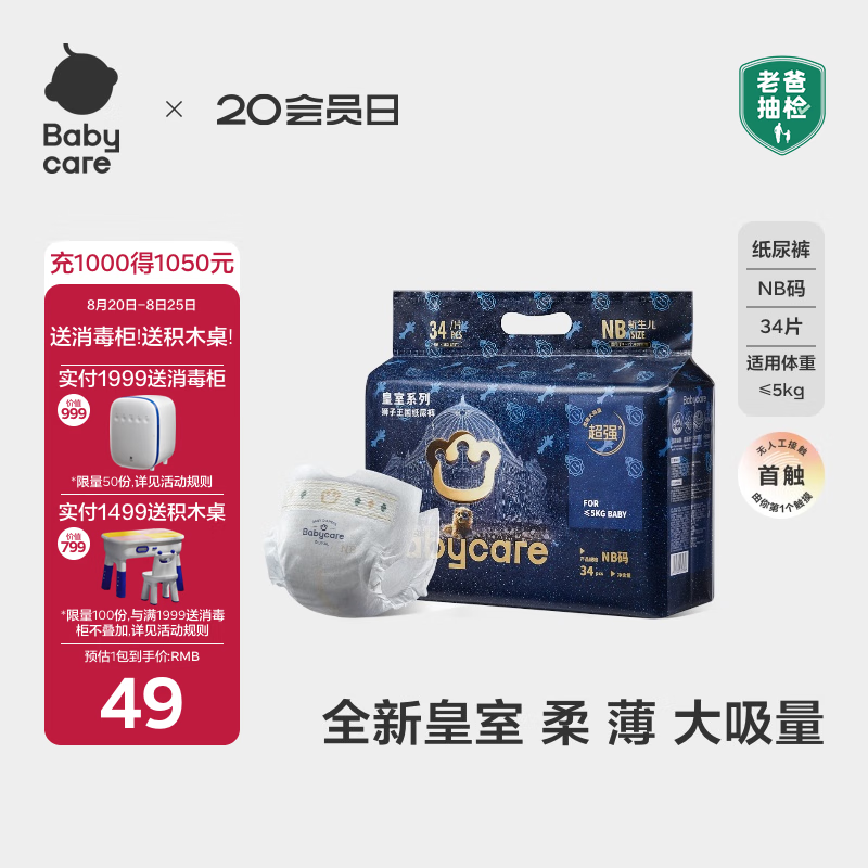 babycare皇室狮子王国纸尿裤bbc婴儿尿不湿尿片夏季超薄透气尿布迷你装 纸尿裤-NB码 1包 34片 【5KG以下】
