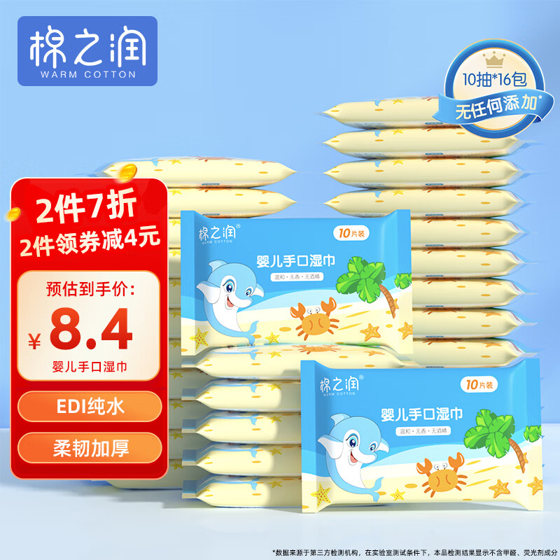 棉之润婴儿手口湿巾小包便携学生儿童专用湿纸巾10抽*16包随身出行装