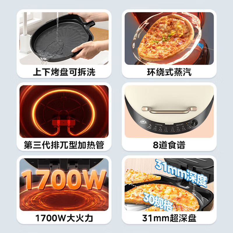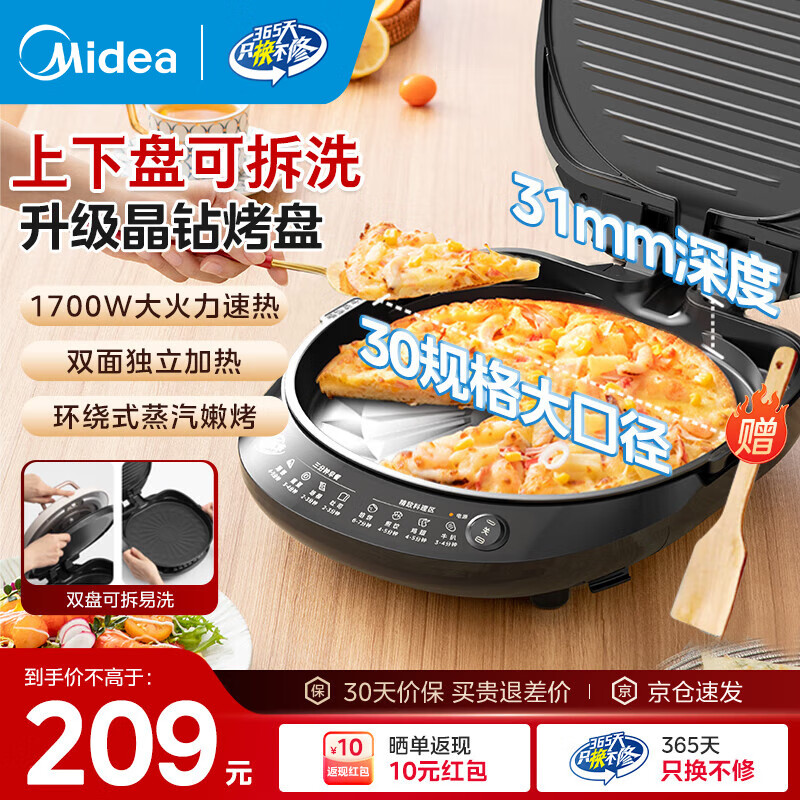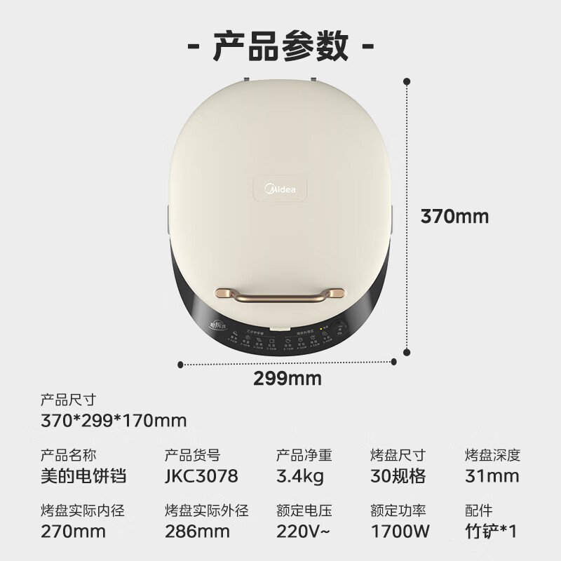 美的(Midea)电饼铛家庭用上下盘可拆洗蒸汽烤盘家用双面加热加深加大烙饼煎饼锅三明治早餐机电煎锅 国家补贴 【上下双盘可拆洗丨31mm加深盘】JKC3078