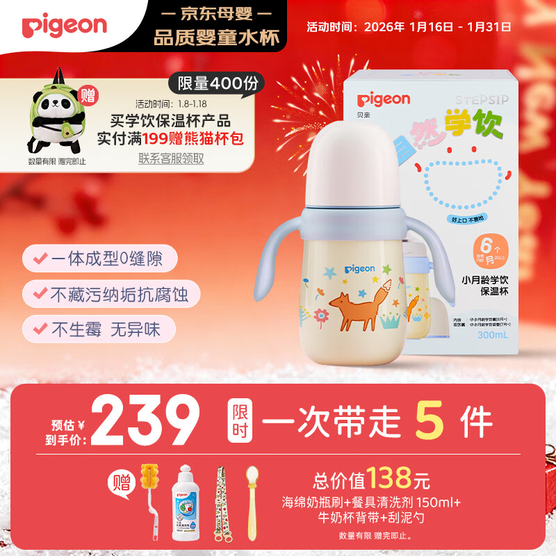 贝亲(Pigeon)宝宝儿童彩绘保温杯水杯保温奶瓶吸管学饮杯防呛防漏300ml 6月+
