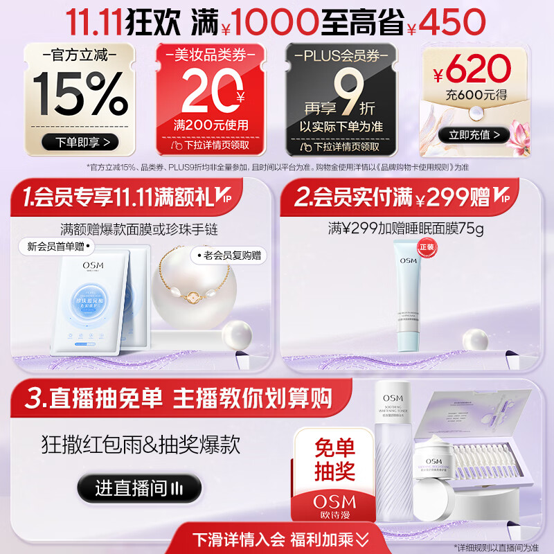 欧诗漫(OSM)珍珠美白淡斑面膜8盒补水保湿改善暗沉提亮护肤品 生日礼物