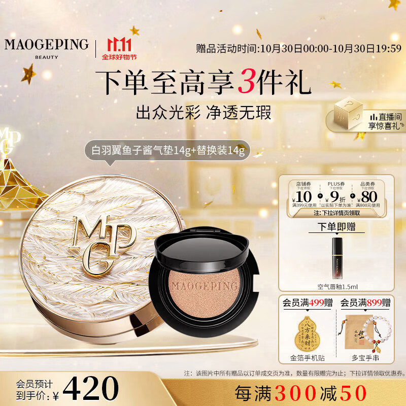 毛戈平羽翼气垫粉底液802自然色14g+14g遮瑕控油保湿持久BB霜生日礼物女