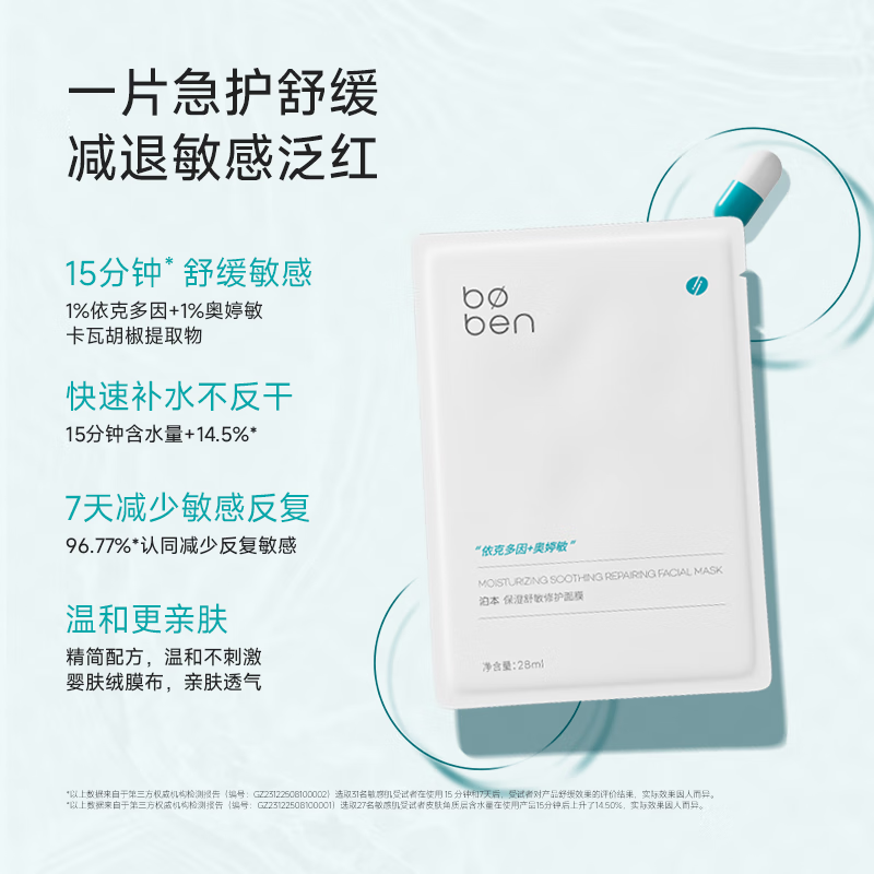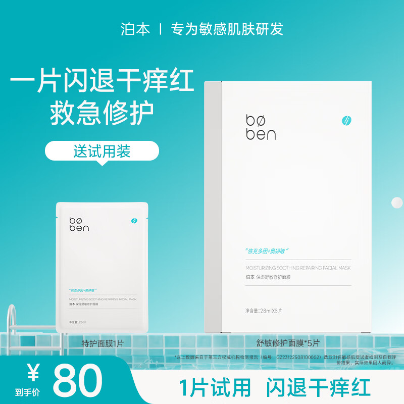 泊本保湿特护面膜女 补水舒缓学生熬夜晒后修护温和敏感肌面膜贴片 5片/盒(送1片,闪退干痒红)
