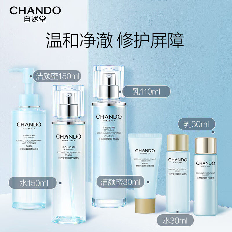 自然堂舒缓修护水乳套装 保湿抗皱紧致乳液积雪草敏感肌可用情人节礼物 修护洁水乳三件套