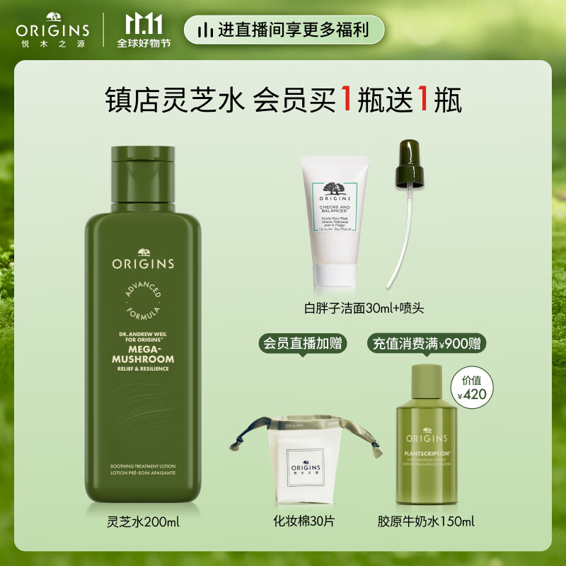 悦木之源(Origins)灵芝菌菇水200ml保湿爽肤水精华护肤品湿敷补水喷雾生日礼男女