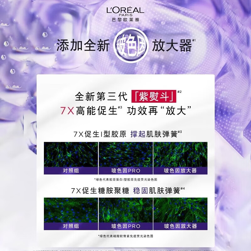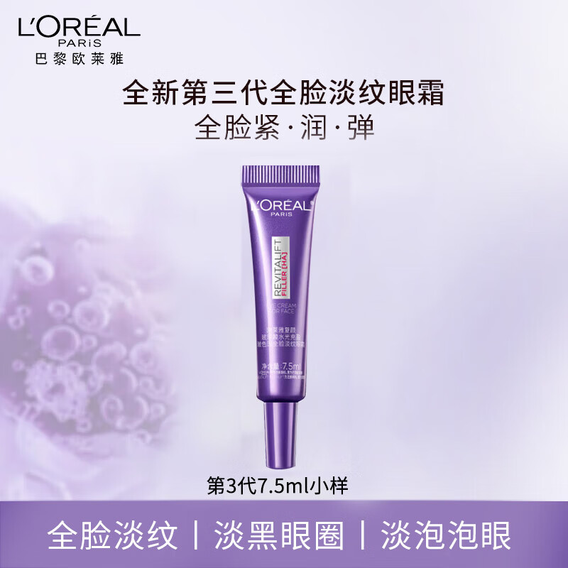 欧莱雅紫熨斗眼霜全脸淡纹玻尿酸黑眼圈提拉紧致补水保湿花蜜胶原眼霜 眼霜7.5ml小样