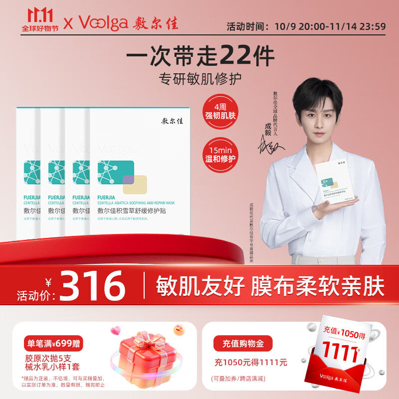 敷尔佳【成毅同款】积雪草舒缓修护贴4盒 补水保湿舒缓面膜 礼物送女友