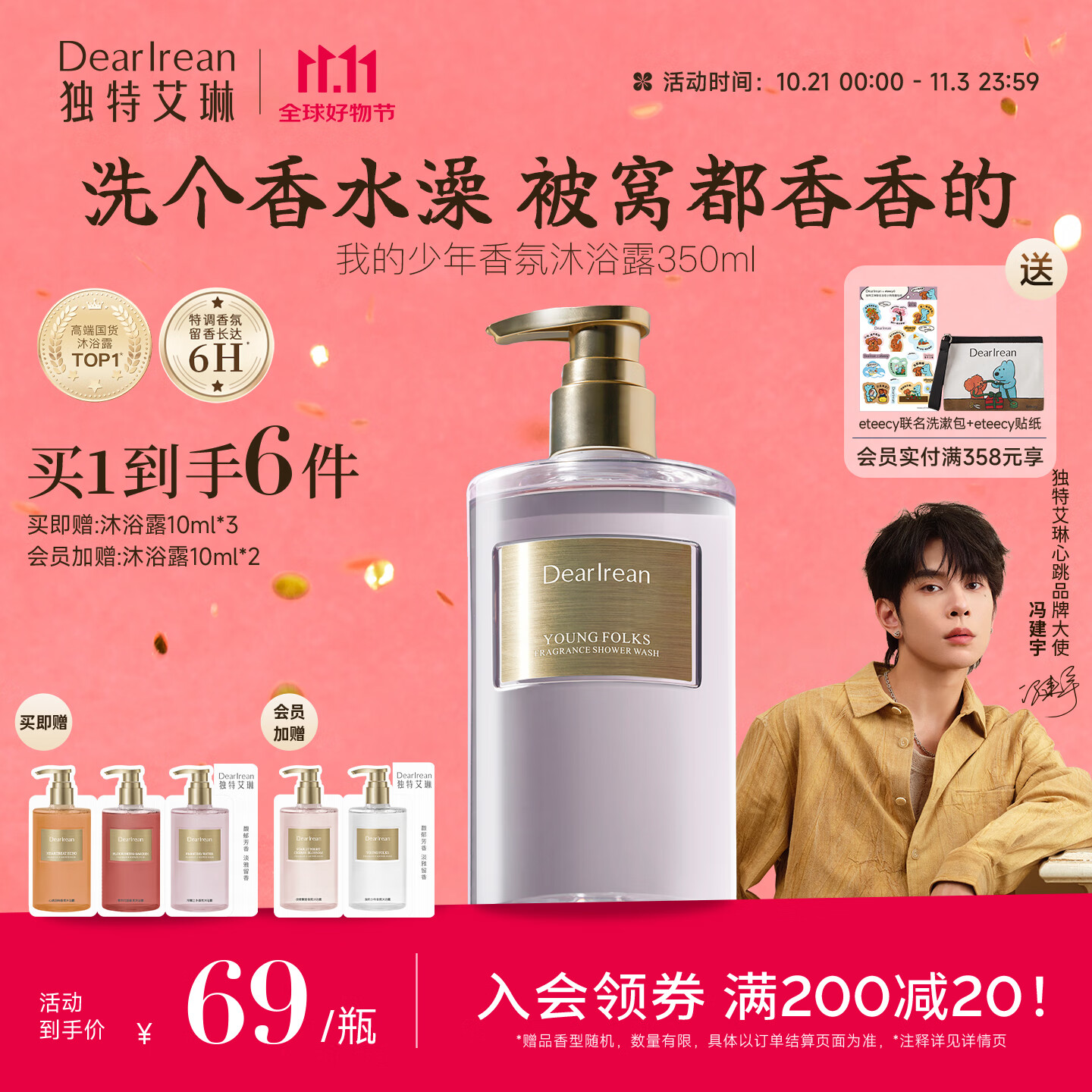 独特艾琳(Dear lrean)冯建宇推荐香氛沐浴露保湿清洁持久留香沐浴液男女350ml我的少年