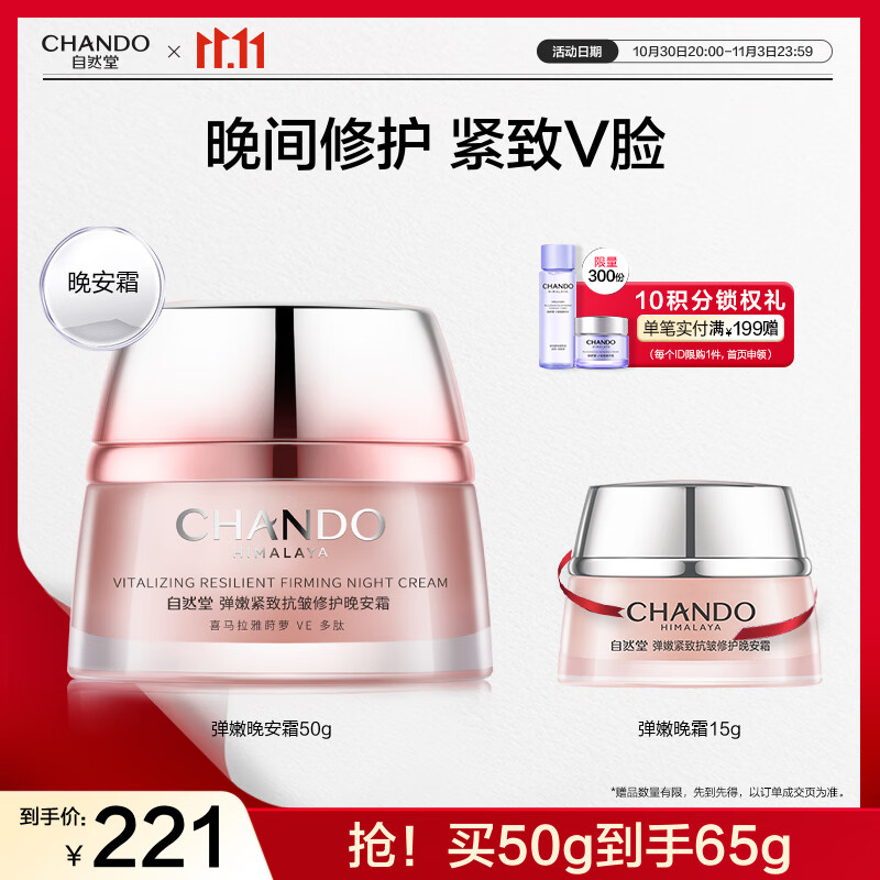 自然堂弹嫩晚安霜 抗皱修护滋润保湿面霜 提拉紧致滋润补水霜护肤品中年