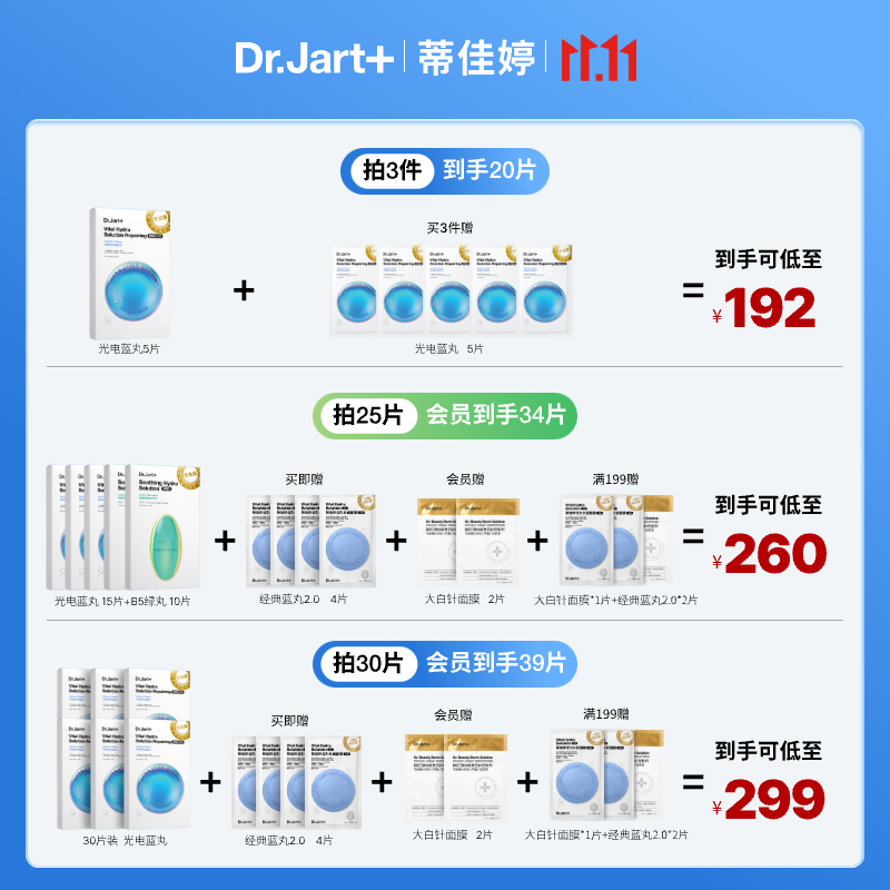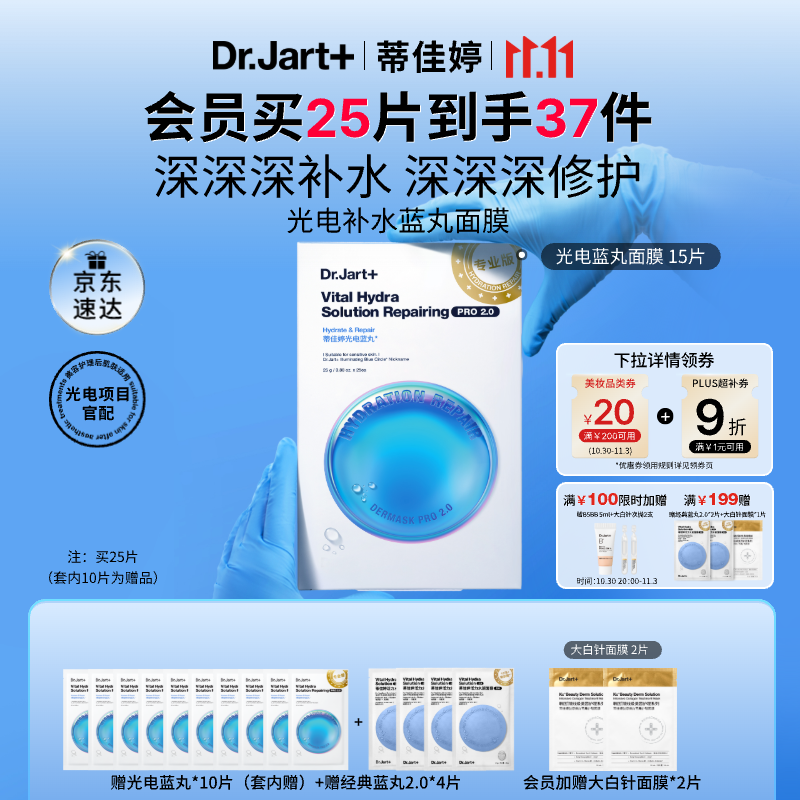 蒂佳婷(Dr.Jart)光电蓝丸面膜25片 玻尿酸补水保湿修护男女适用