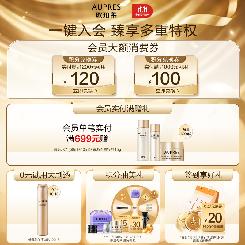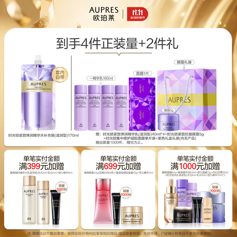 欧珀莱(AUPRES)时光锁水乳套装滋润型 紧致弹润补水保湿护肤品生日礼物送女友